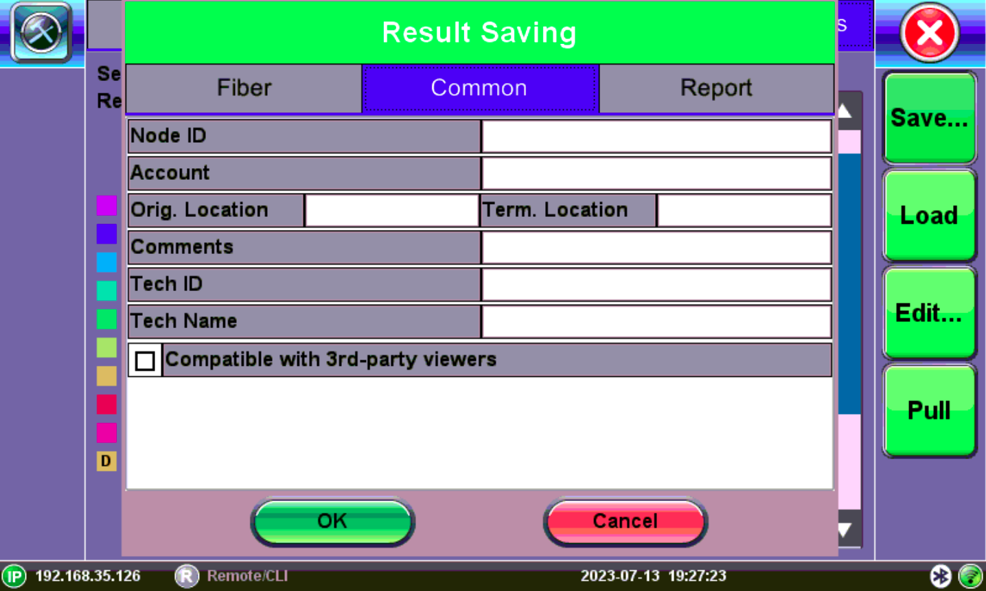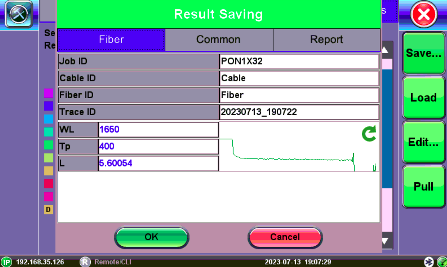 The JobID/CableID/FiberID/TraceID fields determine the location to which the trace is saved. If these settings are not set accurately, the trace will not save to the desired location.