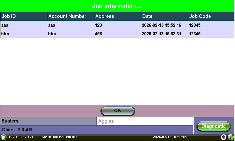 Select OK. Job information is downloaded. The test set will download the job list from R-Server. Jobs are matched by the registered Tech ID.