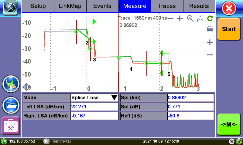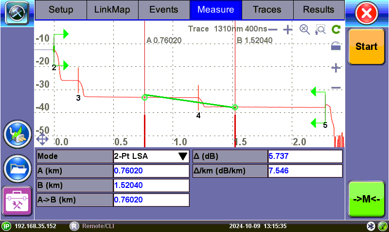 - Loss of the event in dB based on the pre/post LSA sections and center marker