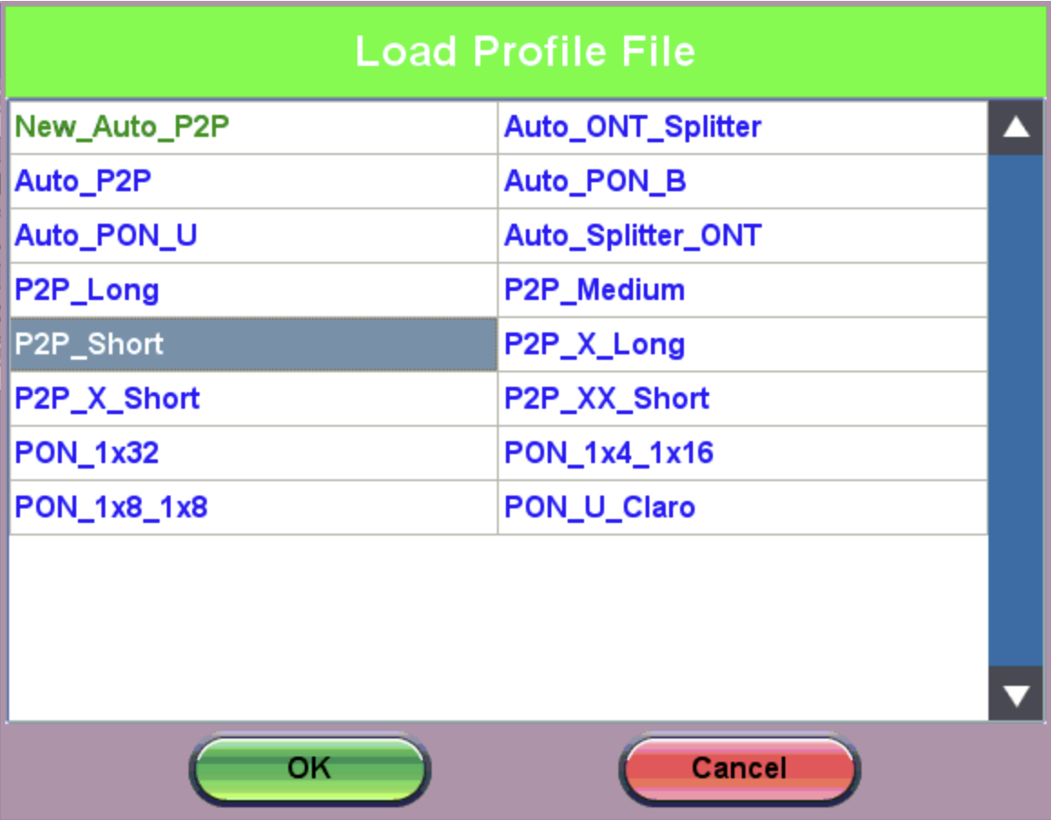 After selecting V-Scout mode, on the Setup screen, tap the V-Scout Profile drop-down to see the Load Profile File screen.