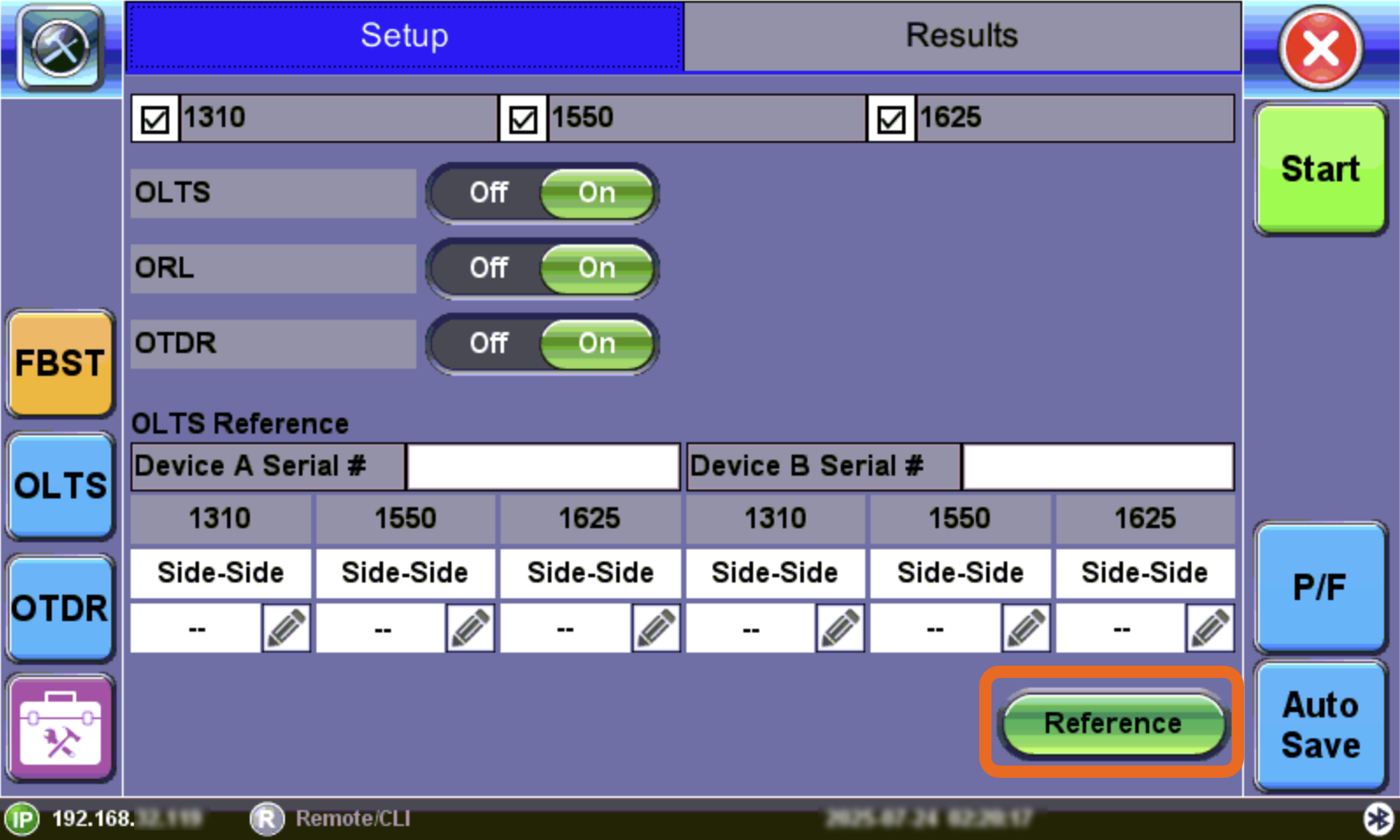 To perform side-by-side referencing directly from the FiberBEAST setup screen, select Reference