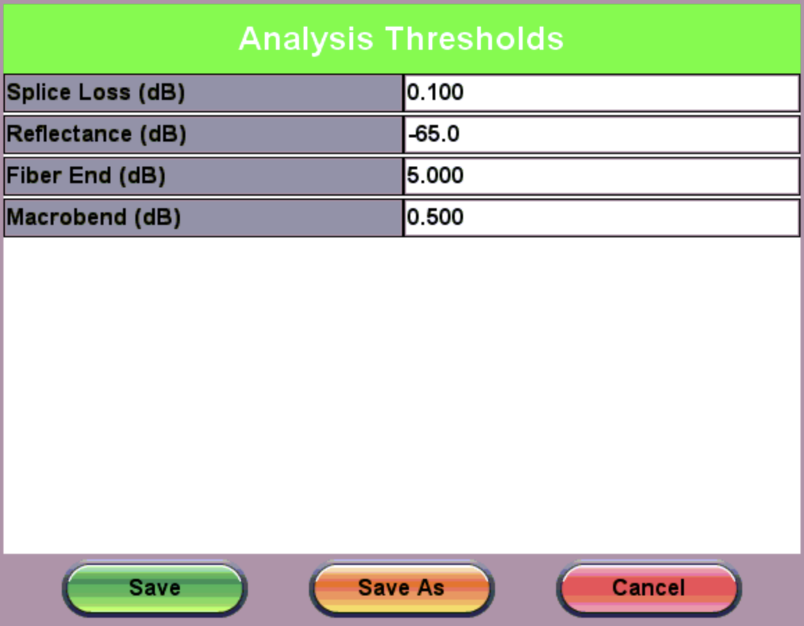 Microbends require two different wavelengths. When setting the thresholds, enter the loss difference between the two wavelengths. The trace will report when the loss exceeds the macrobend threshold and be displayed in the LinkMap.