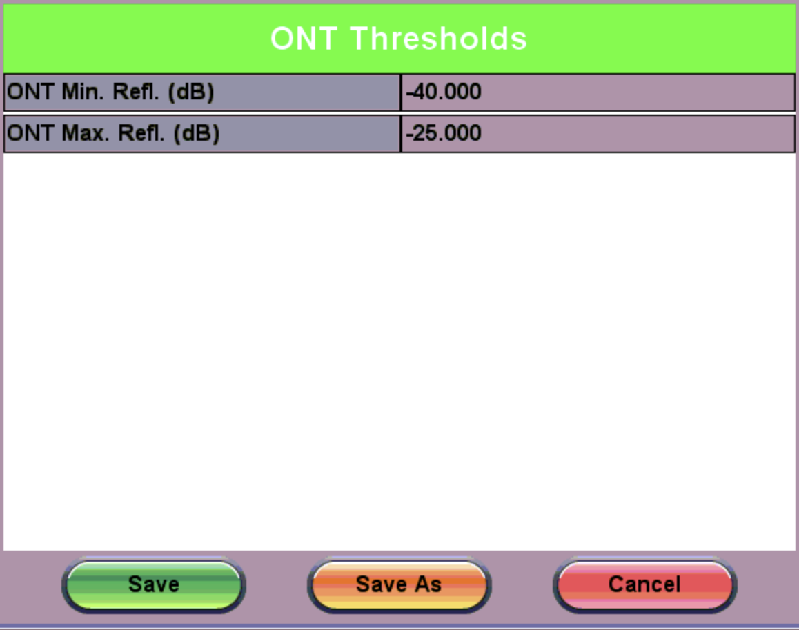 ONT Thresholds define the reflectance threshold value for the ONT side. The default ONT Thresholds are locked from editing.