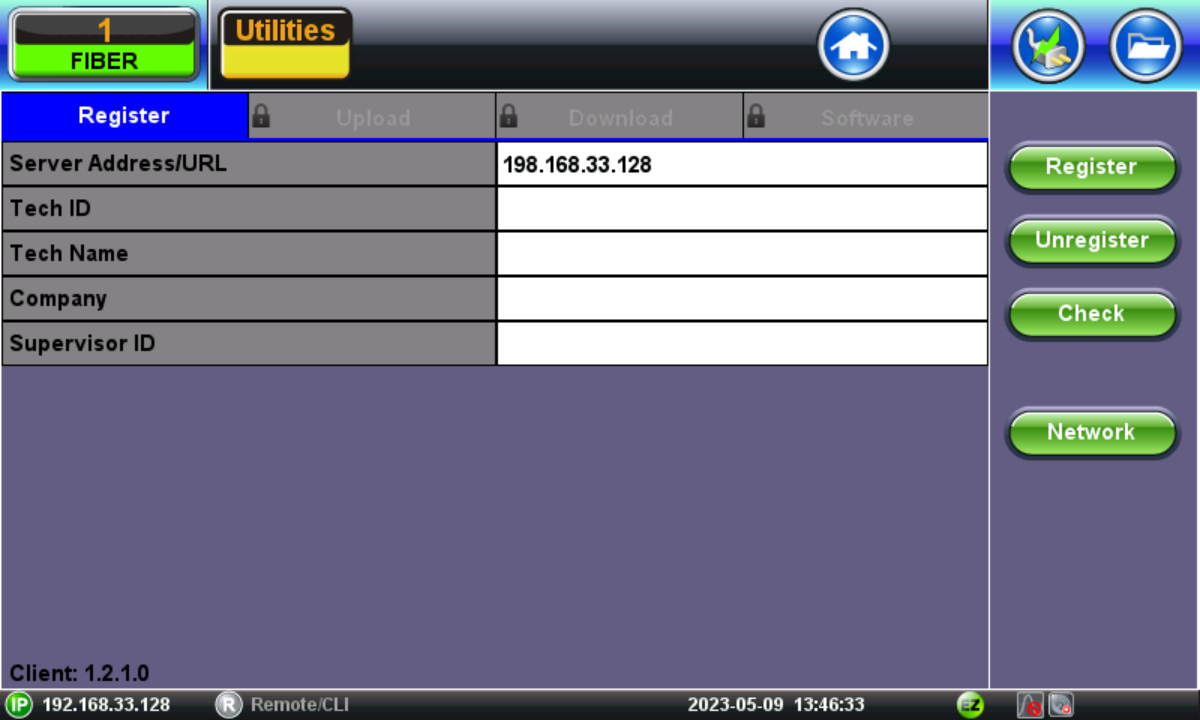 A test set must register to an R-Server (establish IP connection) before it can upload results to the server; otherwise, a reminder message will pop up.