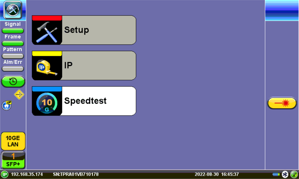 The test set has a default RJ45 port selected with 1000M/2.5G/5G/10G Base-T Test Mode. If the port is connected to a switch it acquires the IP address automatically (if DHCP is set up). But, the test mode can always be manually switched.