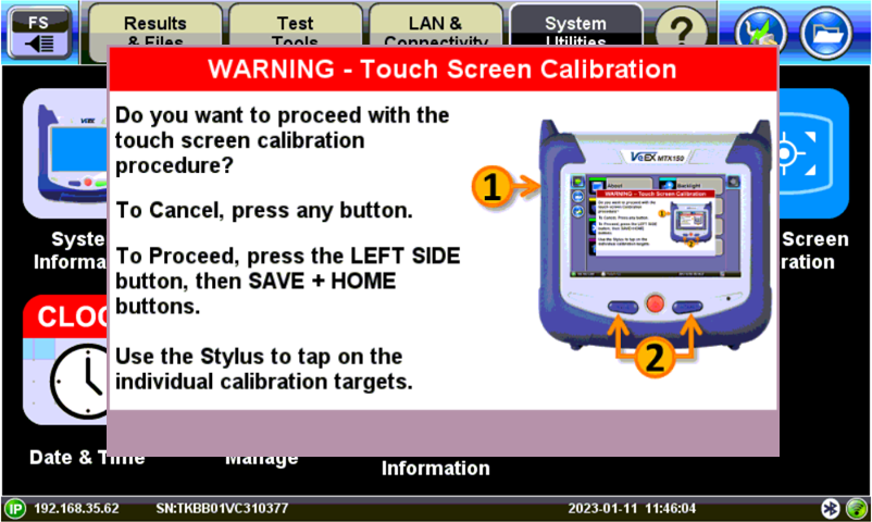 Screen calibration can be accessed from System Utilities > Touch Screen Calibration.