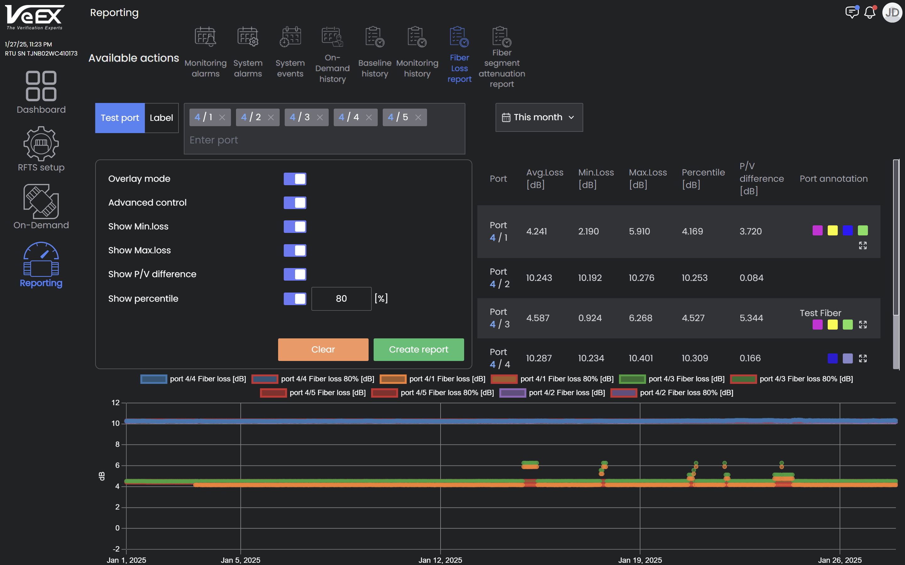 Fiber Loss Report for multiple ports overlayed and plotted on single graph
