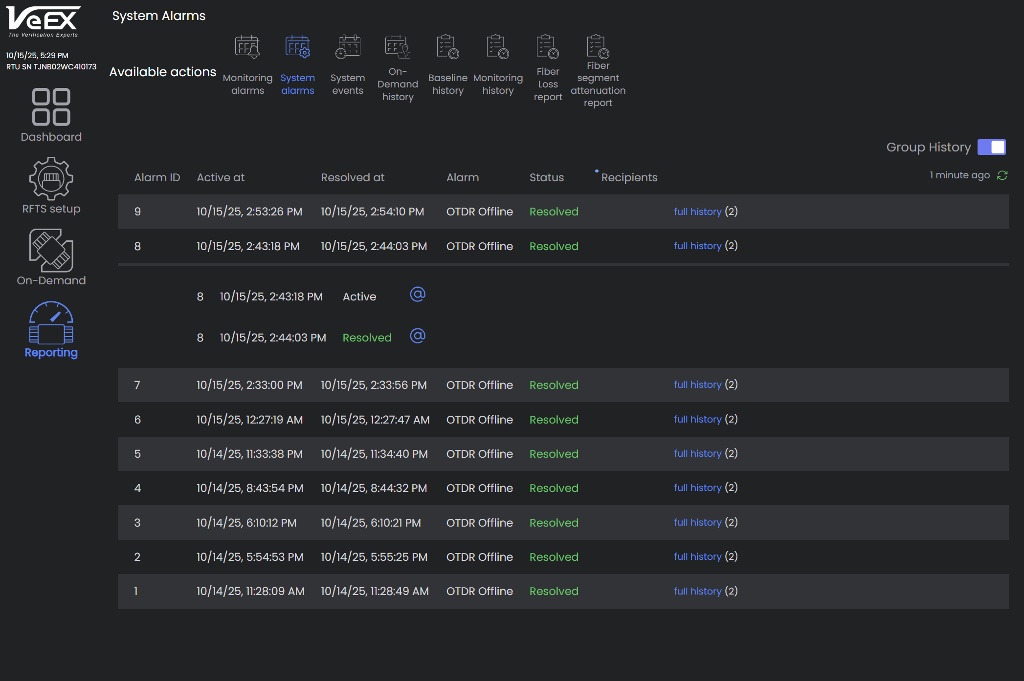 Alarms Report: Full History