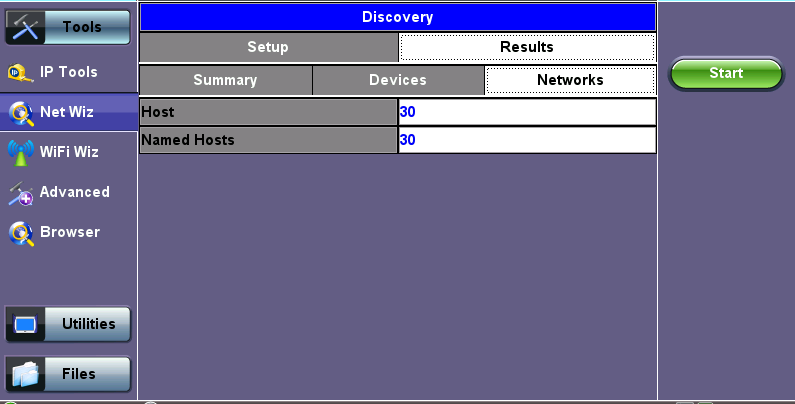 Networks reports the number of IP Subnets, Hosts, Domain, and Named Hosts found.