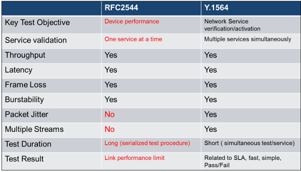 Comparison of RFC 2544 and Y.1564