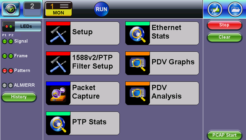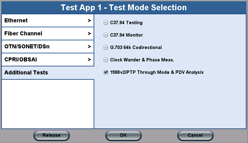 1588v2/PTP Through Mode & PDV Analysis, located in Additional Tests, offers the following features: