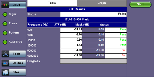 Often, a portion of received jitter is transmitted at a piece of the equipment's output. If LOS is detected during the JTF test, the test will be stopped.