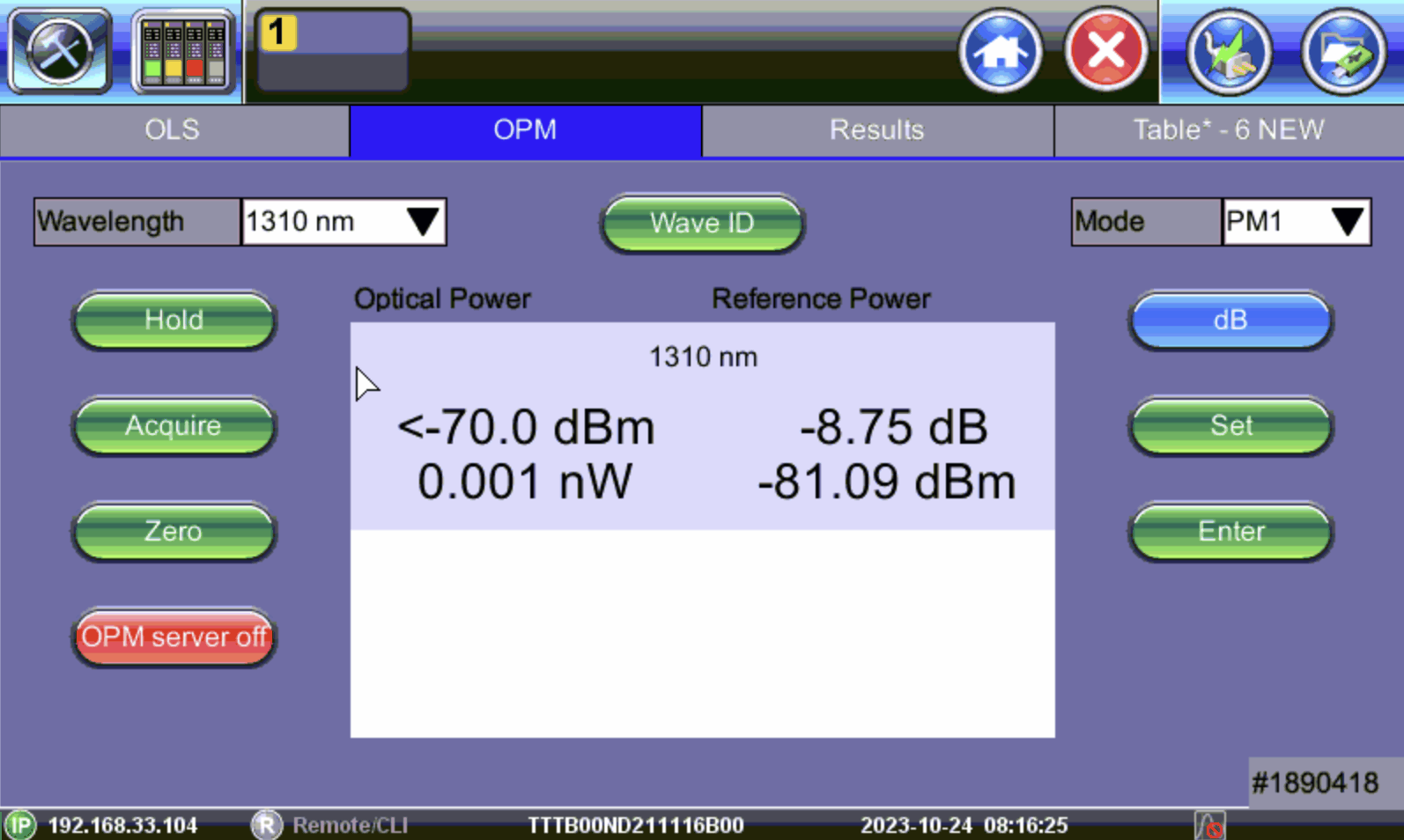 5. Select the OPM tab and select the measurement wavelength or press Wave ID to automatically detect the correct wavelength.